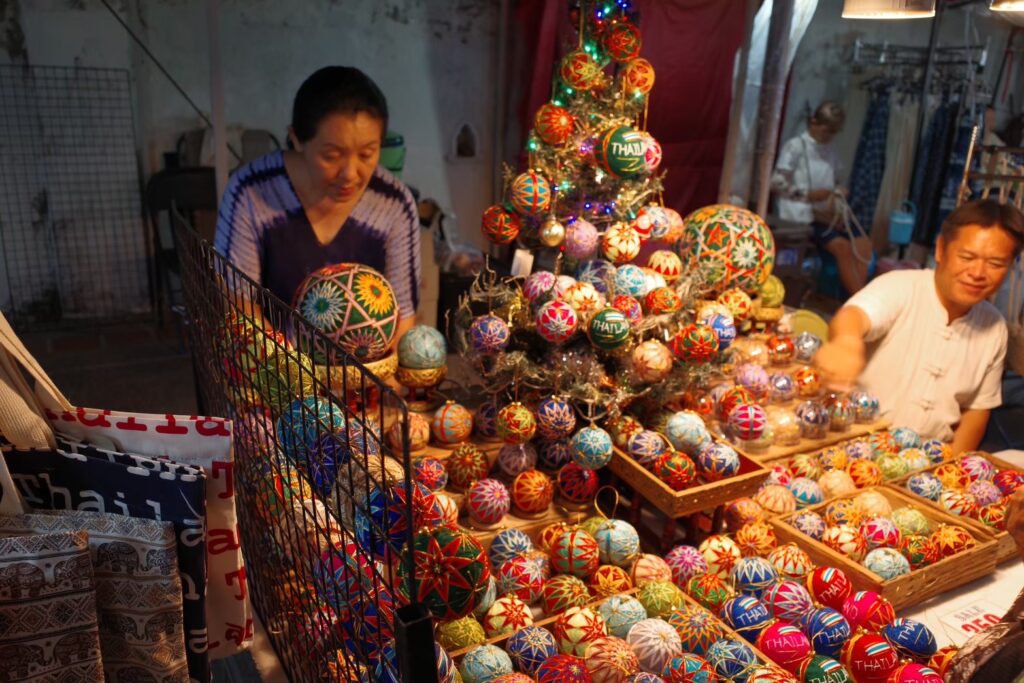 ブリーラタナーホテル前の通りが夜になると賑わい、アクセサリーや小物の屋台が立ち並びます。