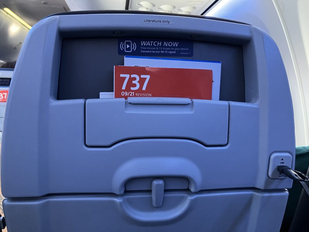 カンクン行きの飛行機は、30分くらい遅れて出発。座席はこんな感じ。画面はなく机のみ。