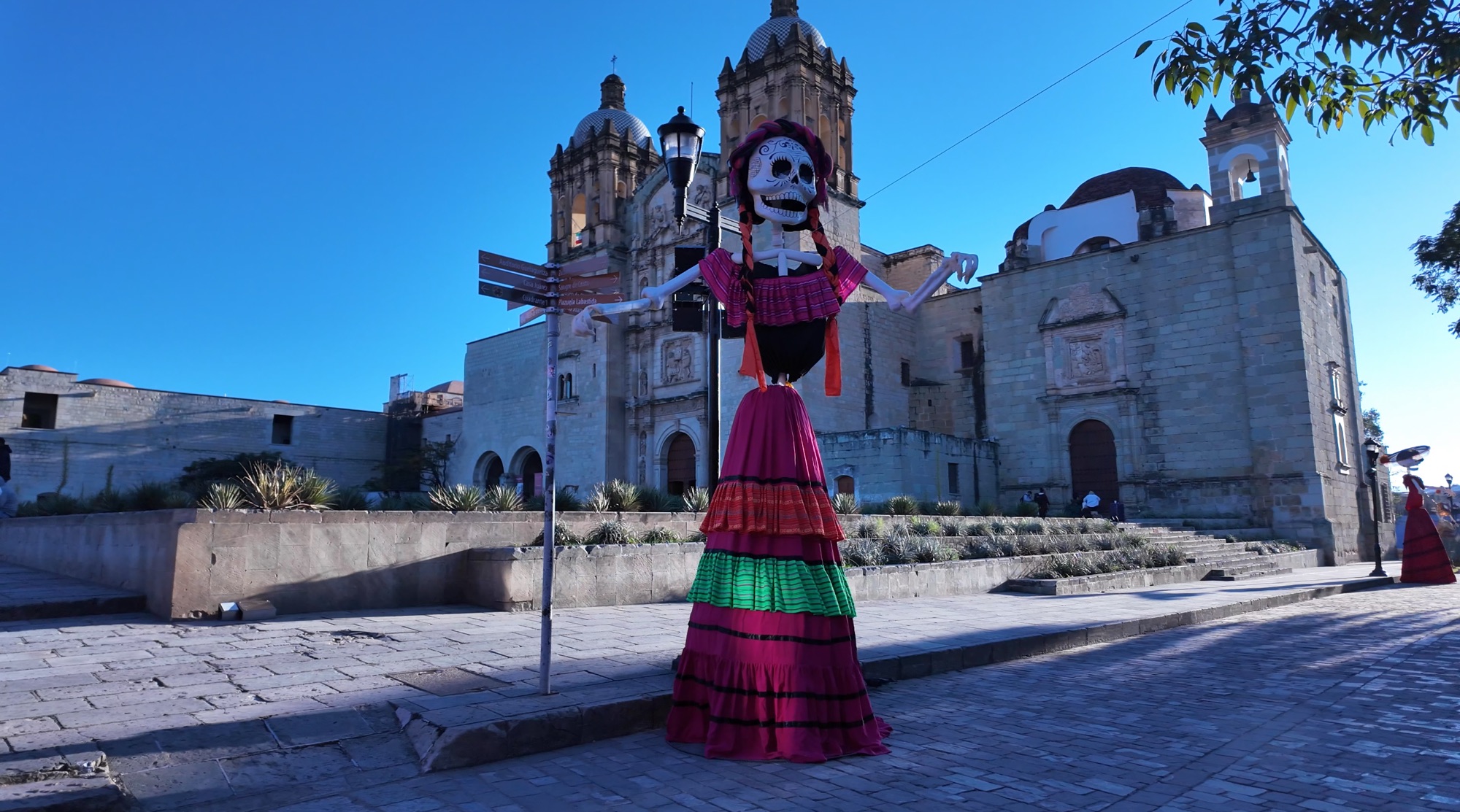 サントドミンゴ大聖堂へ。変装した人たちが多く、写真スポットとしても楽しい場所。朝から若者が集まり、死者の日シーズンならではの賑やかさでした。