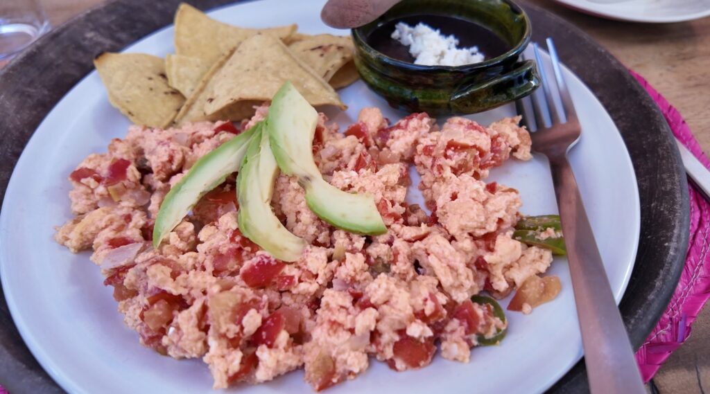スタッフが「オムレツ作る?」と聞いてくれて、もちろん即答で「はい!」。チキン、トマト、アボカド入りで、少しスパイシーな味つけがとても美味しい一品でした。