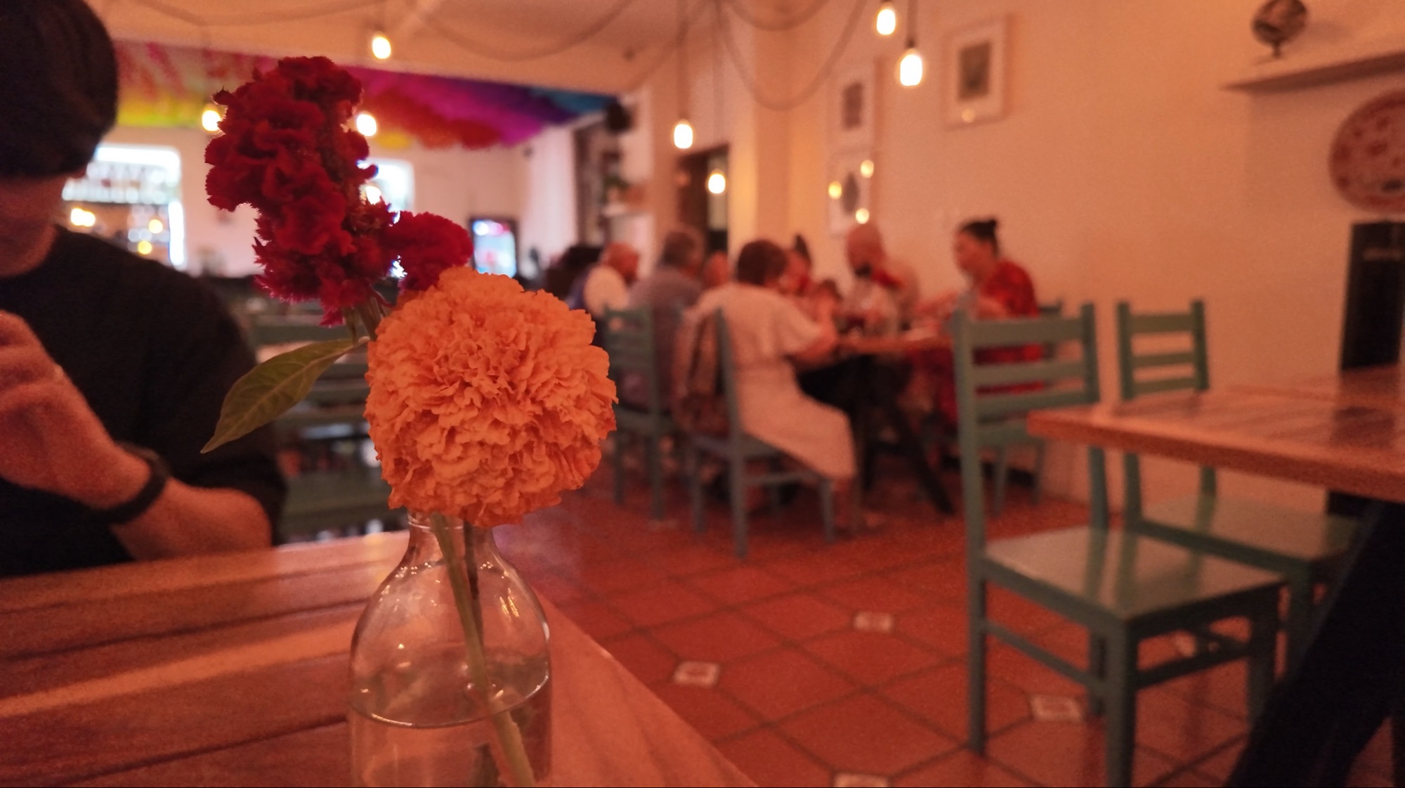 ホテルの外には死者の日の飾りつけがたくさん。色鮮やかなデザインで、朝の散歩だけでも心躍ります。