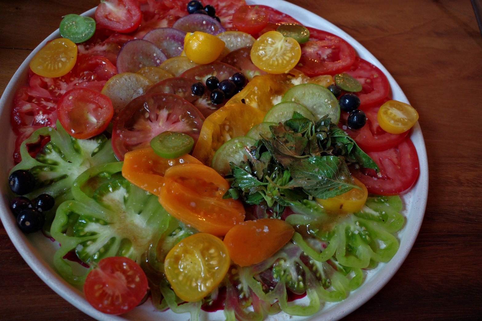 これはこのお店の名物、トマトのマリネ。何種類ものトマトが均一にカットされていて、下の方にはビーツのソースが敷かれています。みずみずしい、いろんな食感。野菜って美味しいんだなあ〜ってしみじみ。