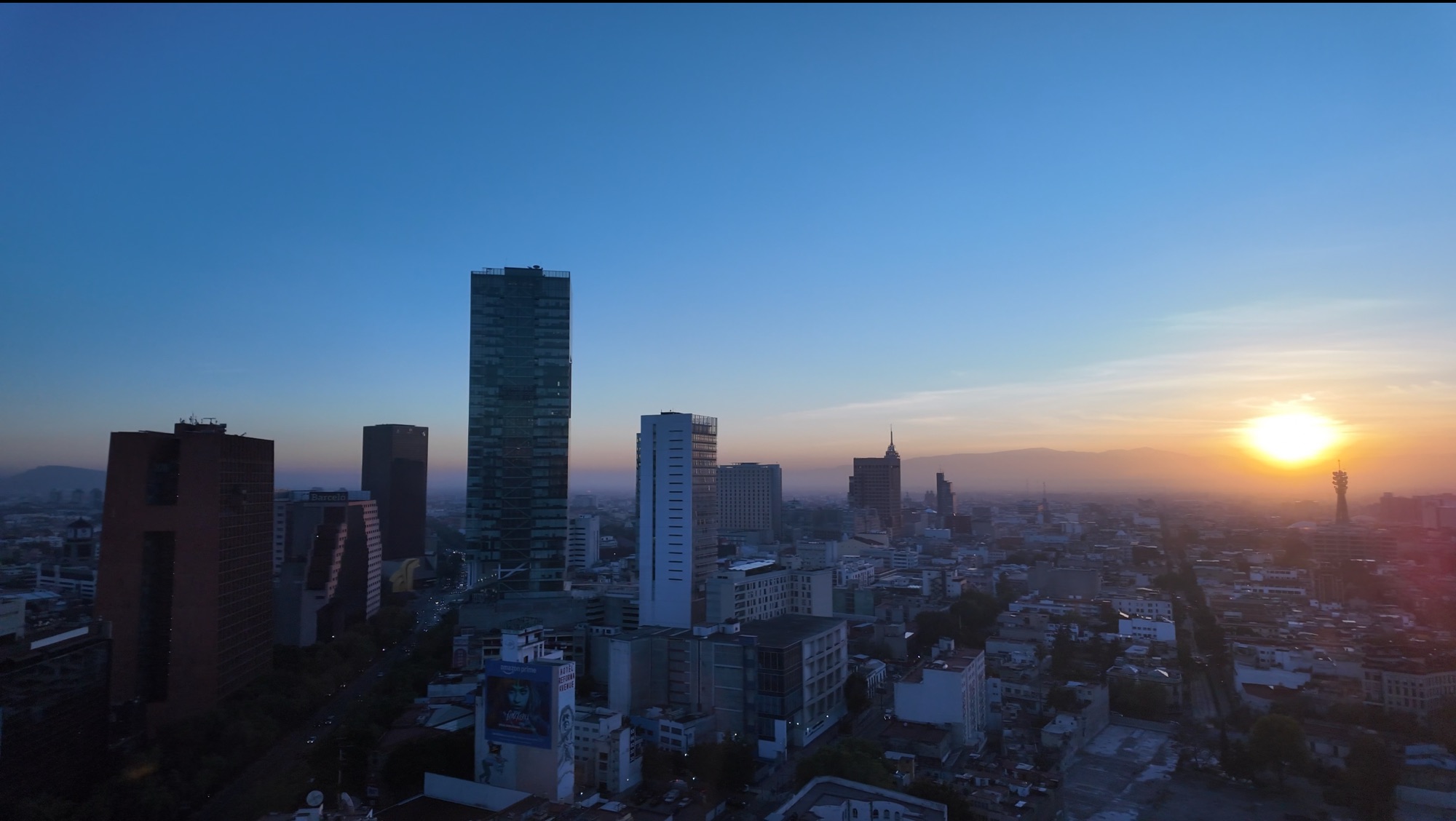 朝日が美しい、午前7時のメキシコシティです。