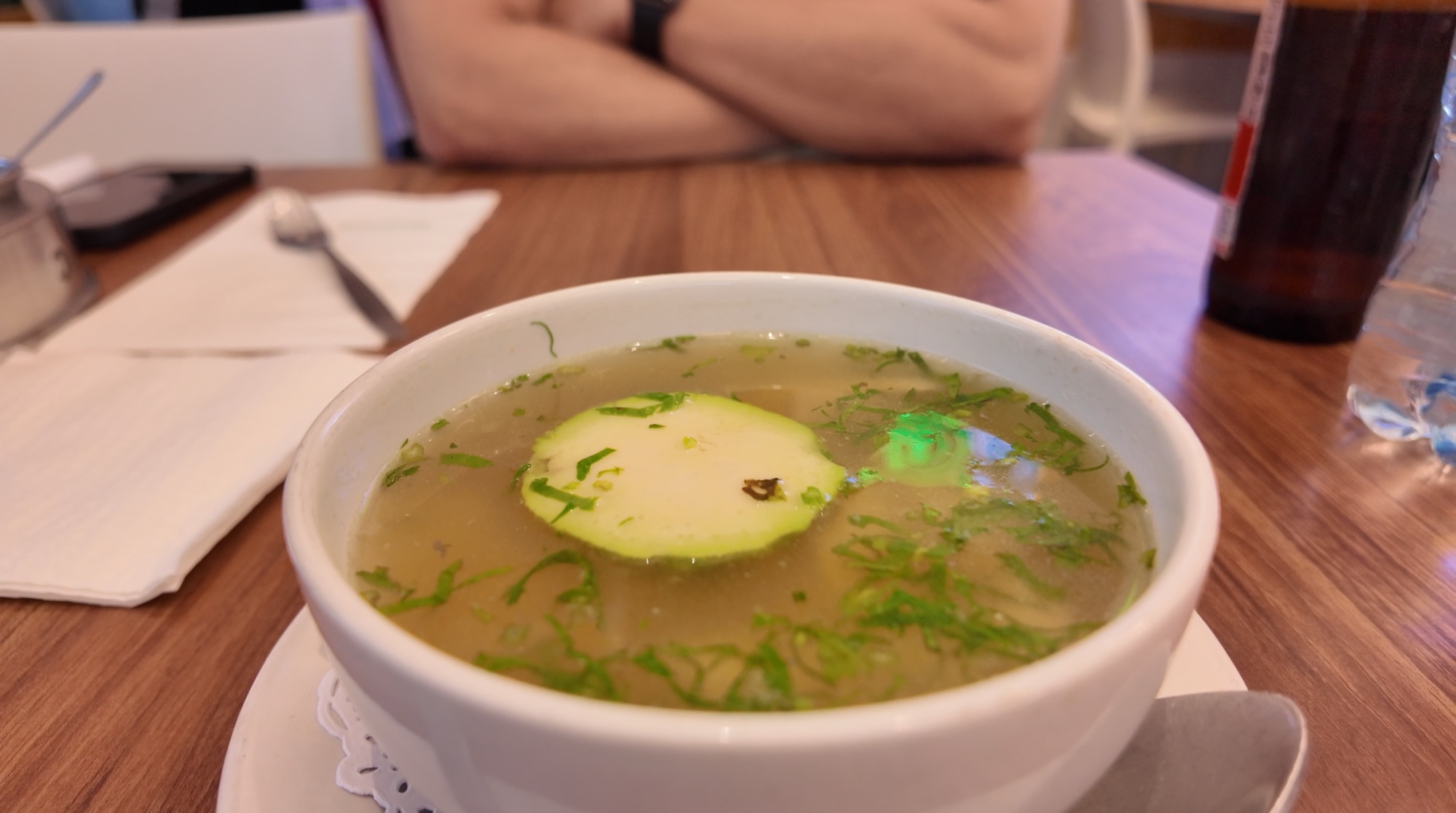 このとき少し体調が万全でなかったので、鶏肉のコンソメスープを注文。